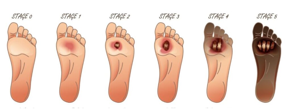 Loét mạn tính khó lành, ảnh hưởng khả năng vận động.