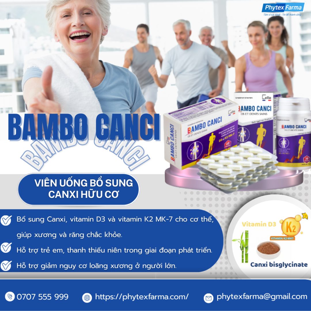 Bổ sung Bambo Canci – sản phẩm bổ sung Canxi bisglycinate từ Pháp, kết hợp Vitamin D3, K2-MK7 và chiết xuất tre (Silic) giúp: